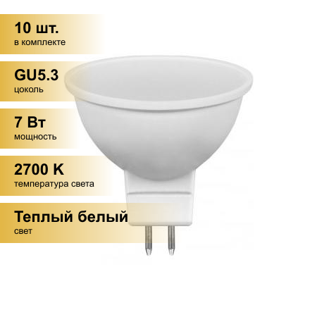 (10 шт.) Светодиодная лампочка Feron MR16 GU5.3 230V 7W(560lm) 2700K 2K 50x50 матов. LB-26 25235 Теплый белый. Цоколь GU5.3 информация: