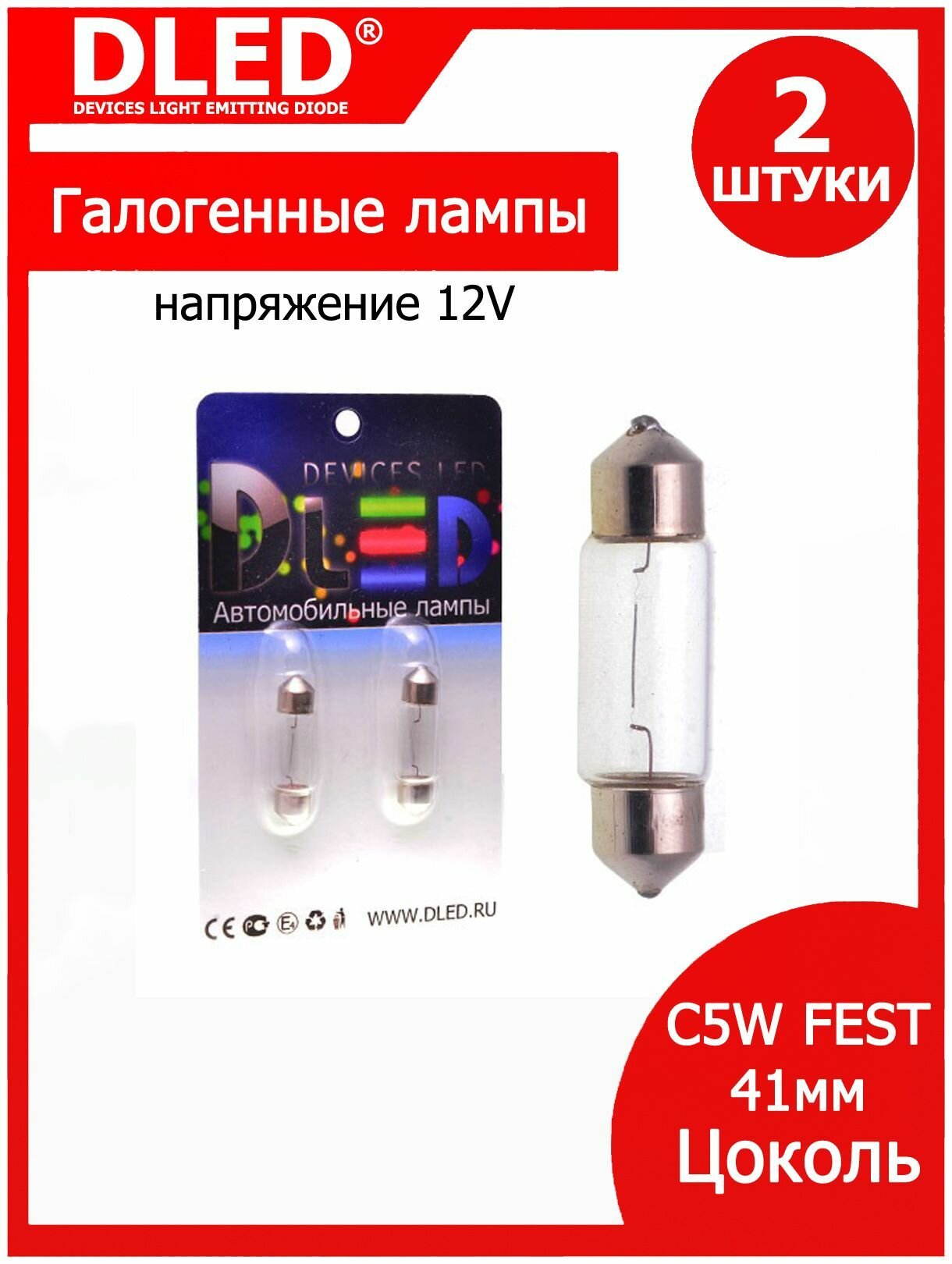 10 цен на Автомобильная лампа галогенная C5W Fest 41мм (Комплект 2 лампы)