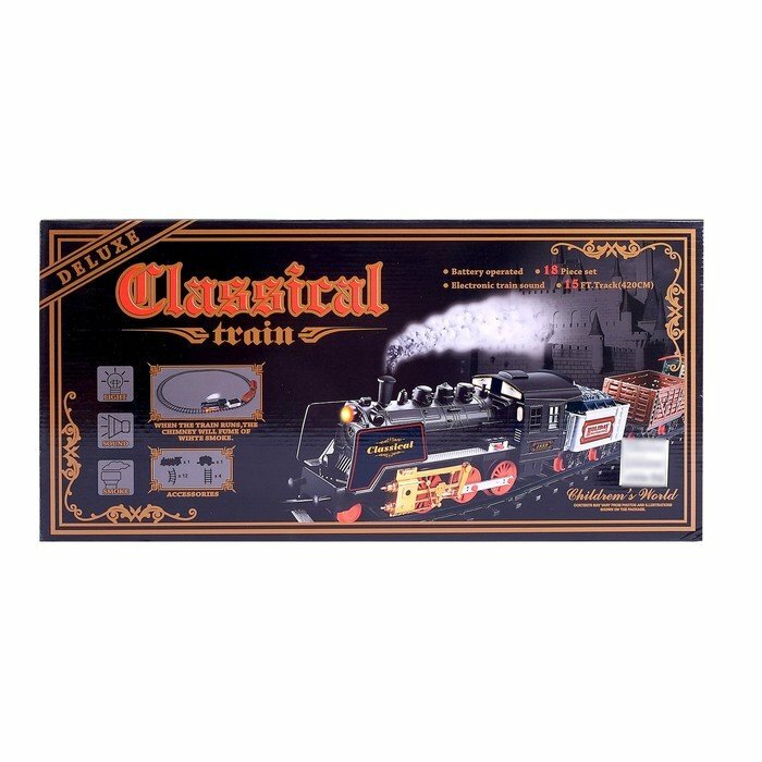 Железная дорога «Классический паровоз», 18 деталей, световые и звуковые эффекты, с дымом, работает от батареек, длина пути 420 см (комплект из 2 шт) информация: