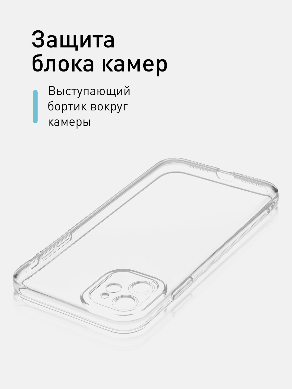 Прозрачный чехол ROSCO на Apple iPhone 11 (Айфон 11) силиконовый чехол, бортик (защита) вокруг блока камер, прозрачный 202 ₽
