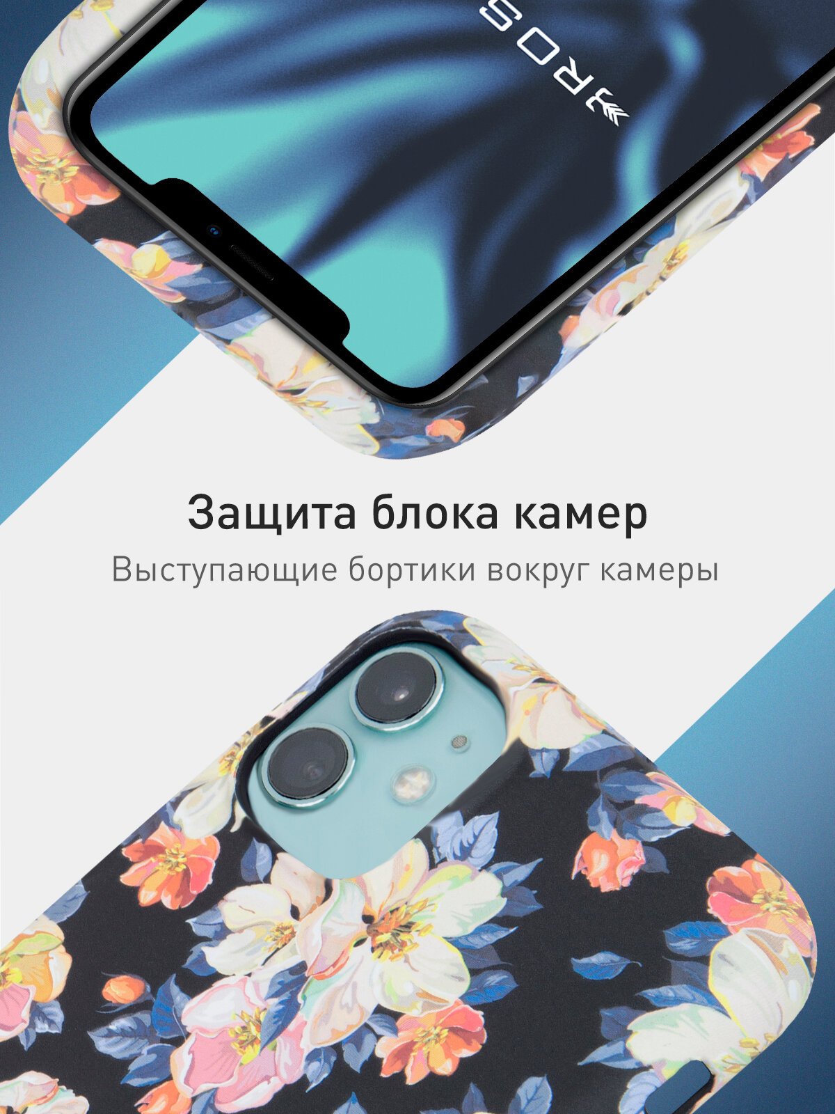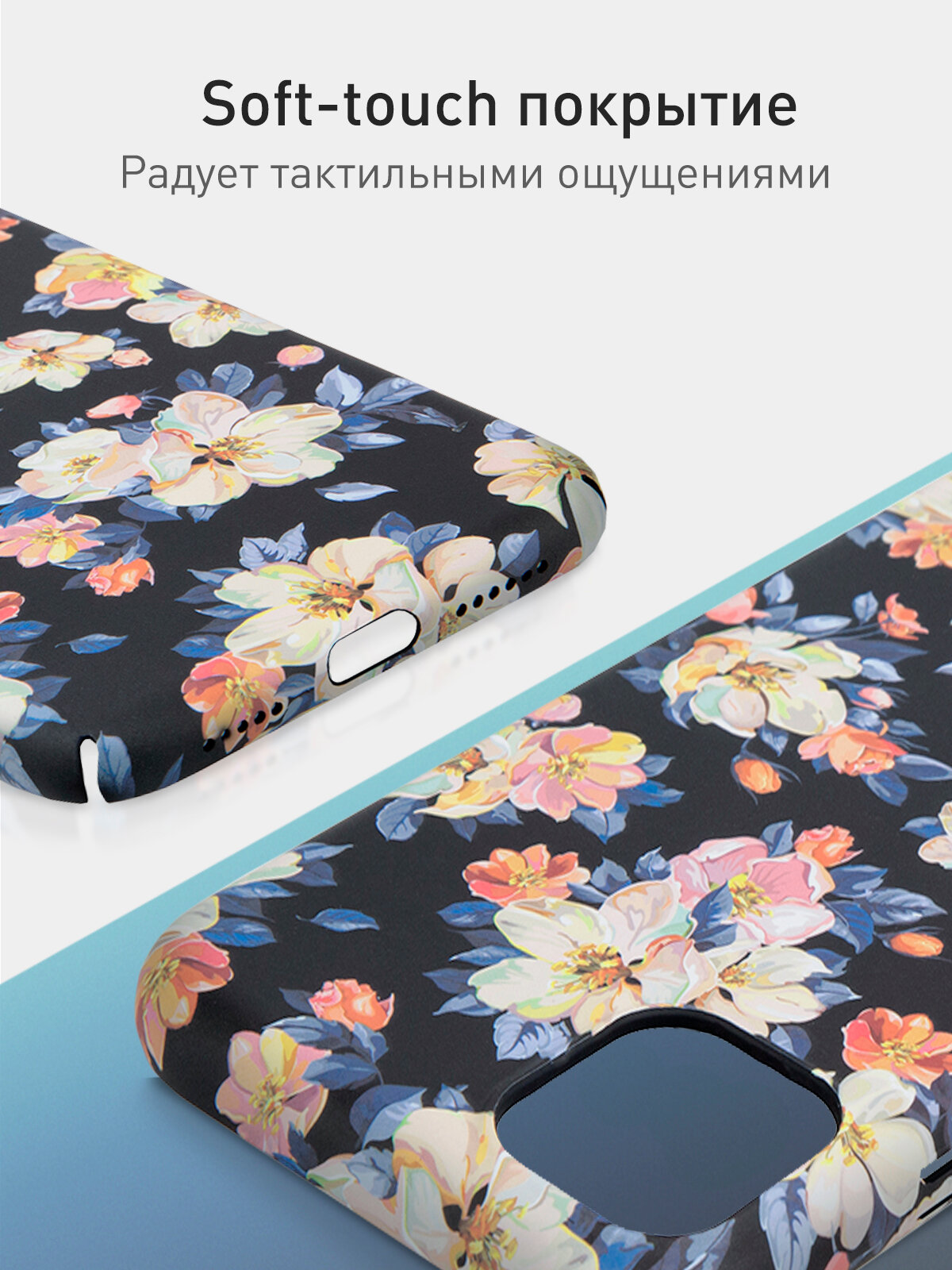 Тонкий пластиковый чехол для Apple iPhone 11 (Эпл Айфон 11) с принтом "Акварельные цветы" и матовым soft-touch покрытием, черный ROSCO информация: