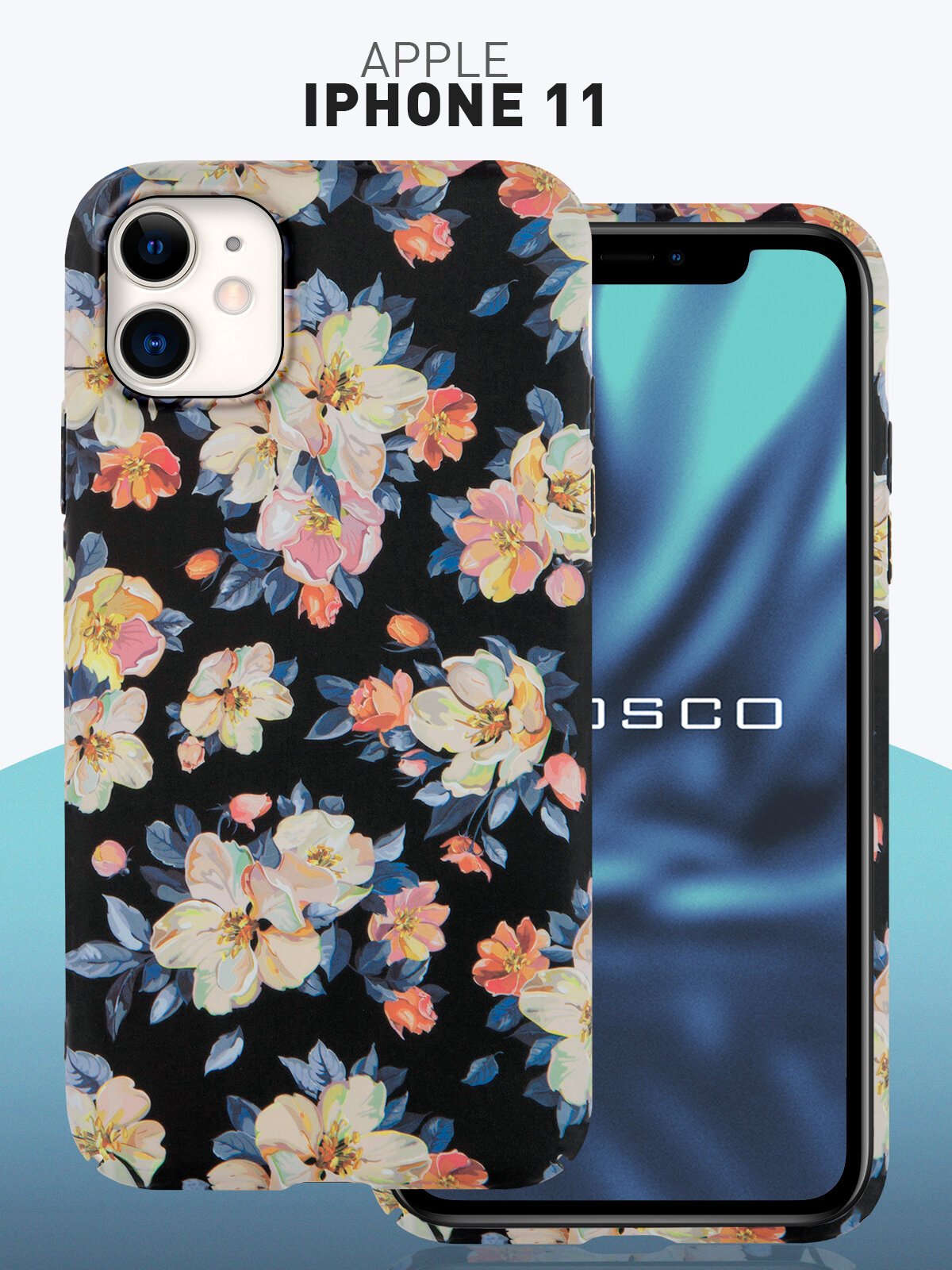 10 цен на Тонкий пластиковый чехол для Apple iPhone 11 (Эпл Айфон 11) с принтом "Акварельные цветы" и матовым soft-touch покрытием, черный ROSCO