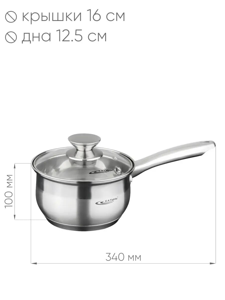 Катунь Ковш «Диана», 1,8 л, d=16 см, капсульное дно, стеклянная крышка с пароотводом, металлическая ручка, индукция