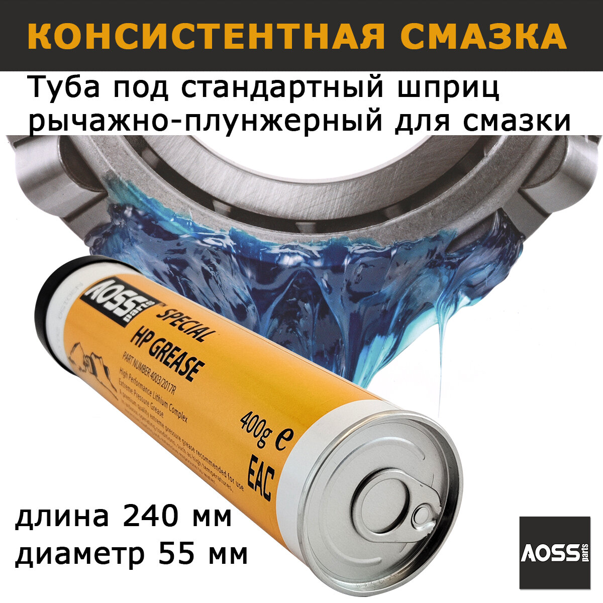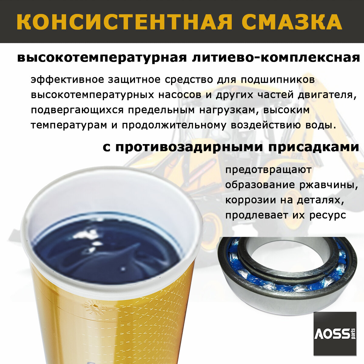 Отзывы на Смазка литиевая синяя высокотемпературная туба 400г AOSS Parts Special HP GREASE водостойкая для спецтехники JCB 3CX, автомобильная, для подшипников