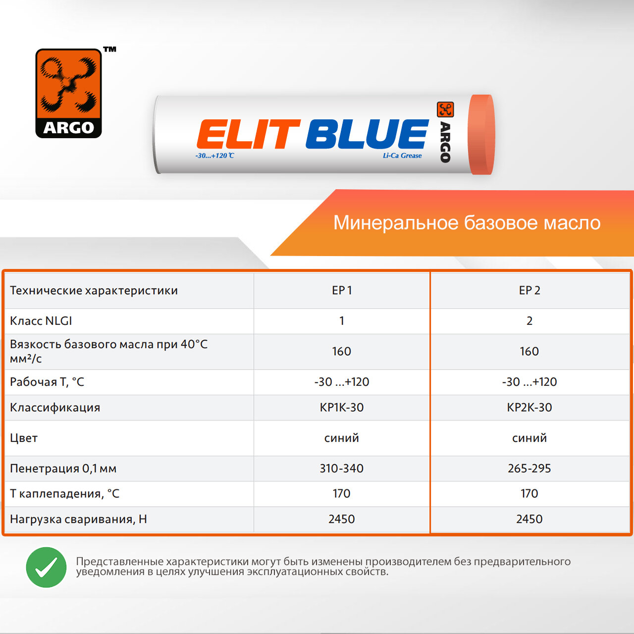 Смазка синяя универсальная автомобильная Elit Blue EP2 туба-картридж 0,37 кг информация:
