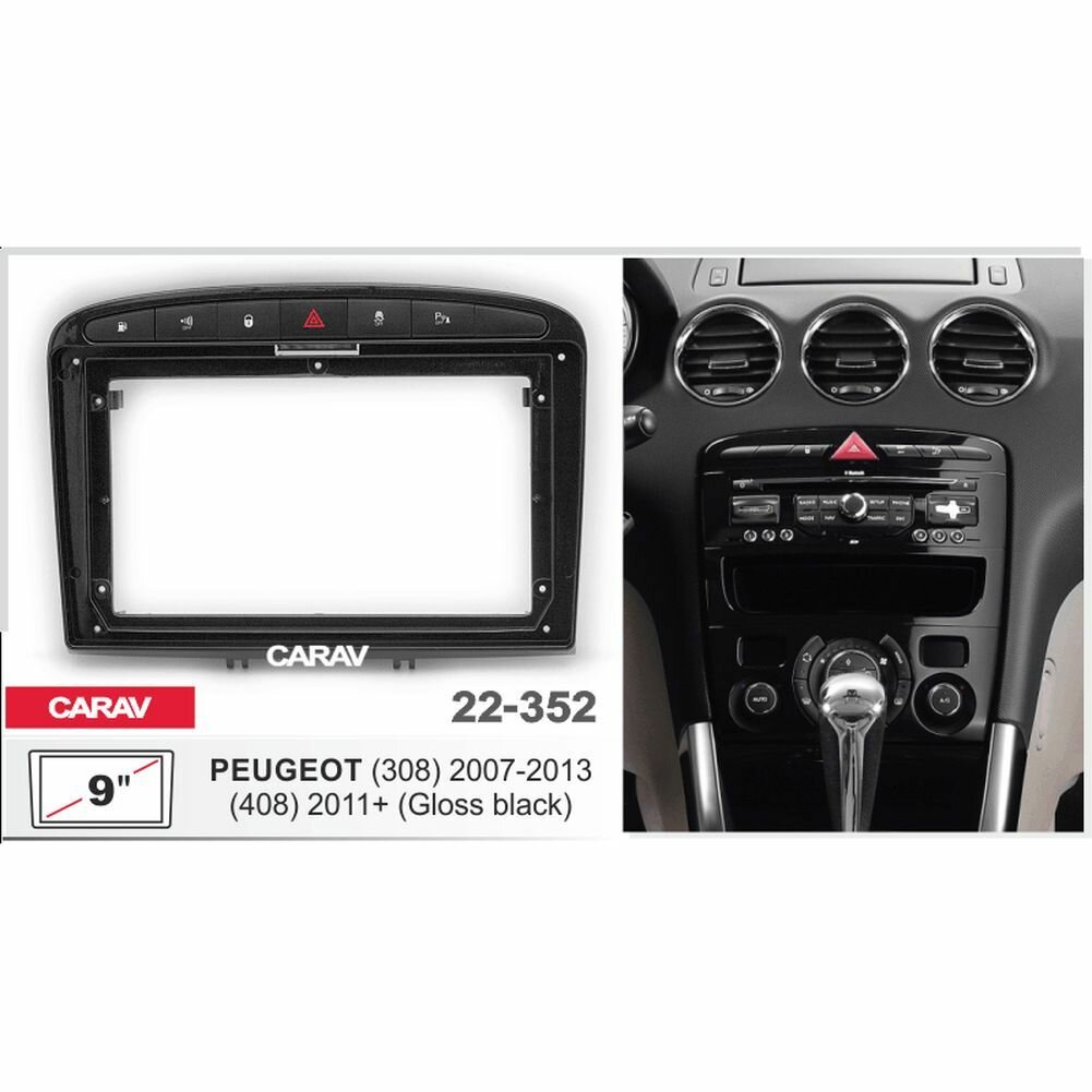 10 цен на Переходная рамка 9" Android для PEUGEOT (308) 2007-2013, (408) 2011+ (глянц черный) CARAV 22-352