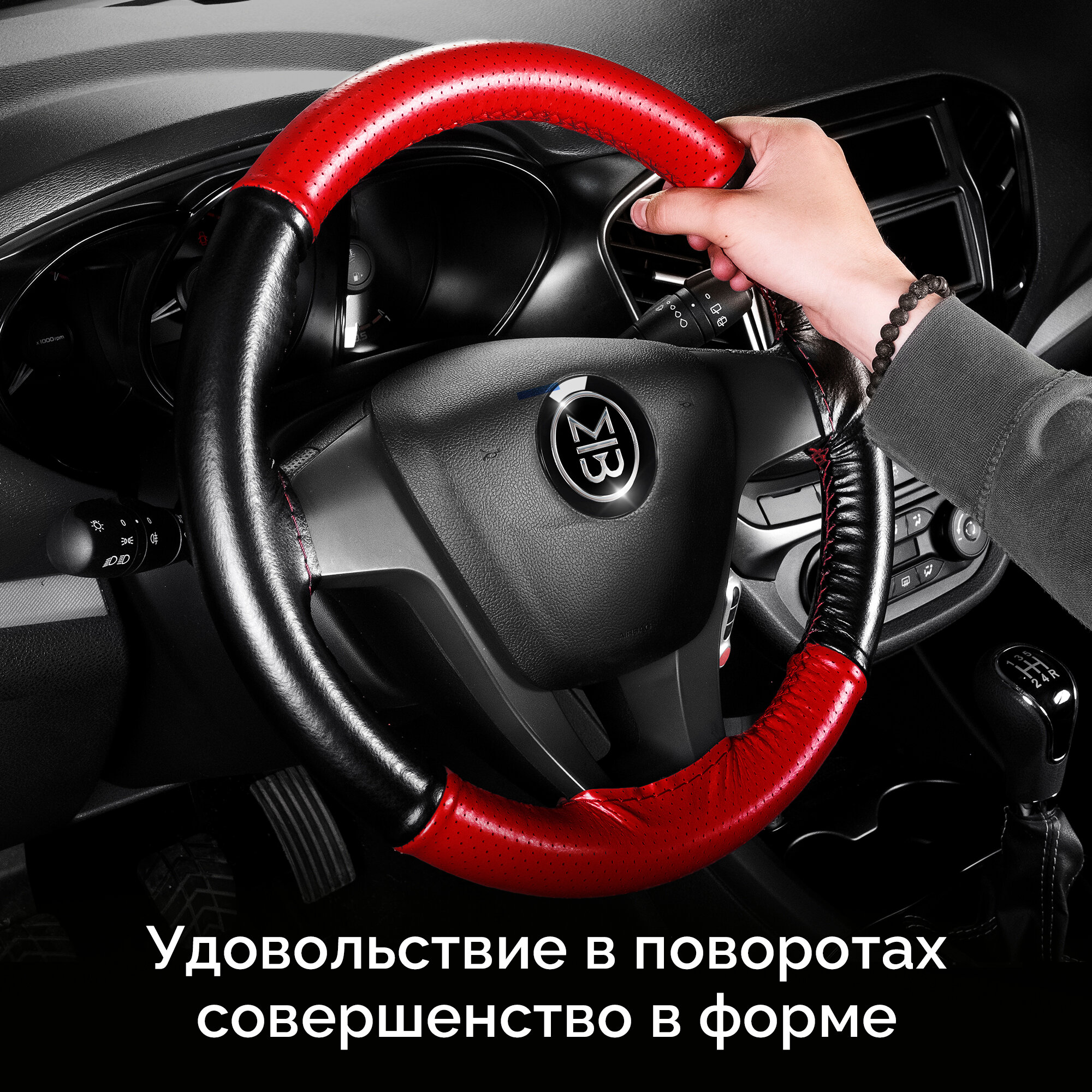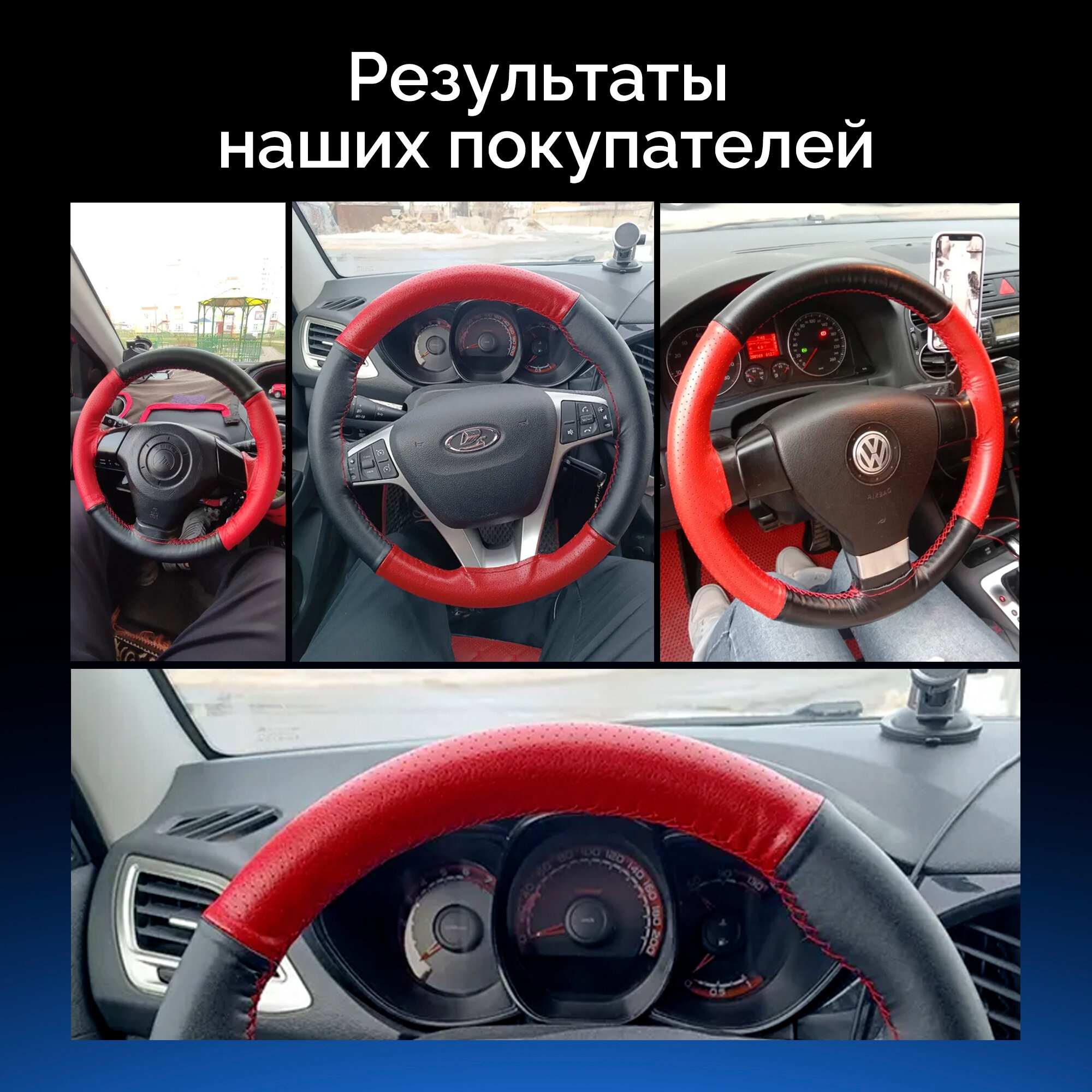 Отзывы на Оплетка на руль из натуральной кожи со шнуровкой красный + черный