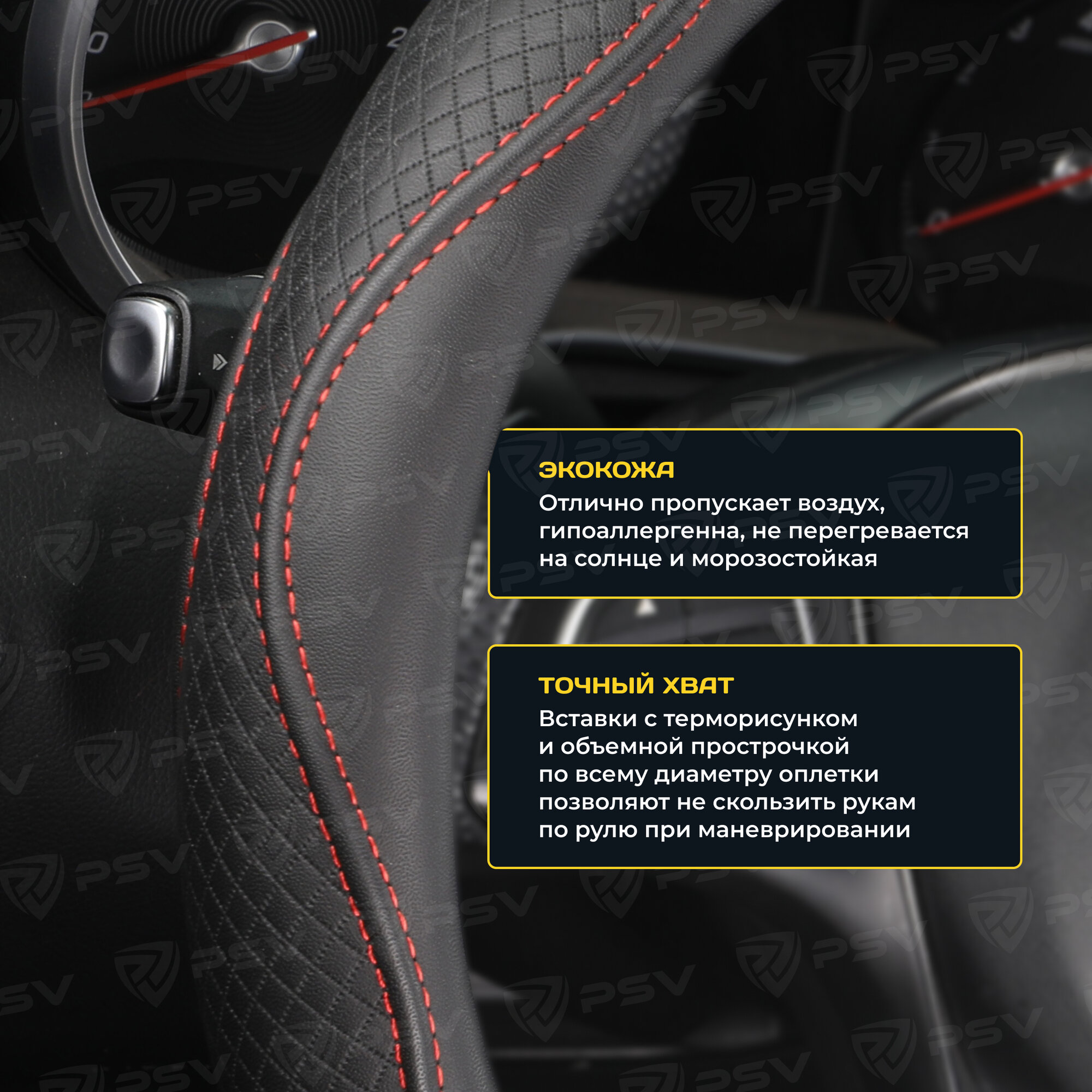 Оплетка чехол на руль PSV ILLUSION (Черно-красная) M 37-39 см, экокожа, 136845 информация: