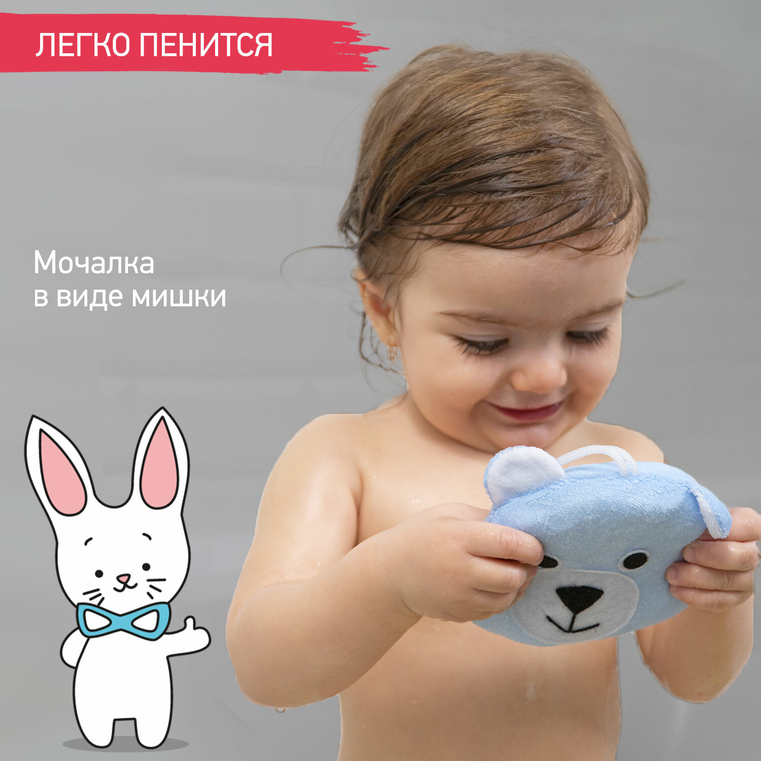 Мочалка ROXY-KIDS «Зайка», для купания, розовая, мягкая, с петелькой, для детей 272 ₽