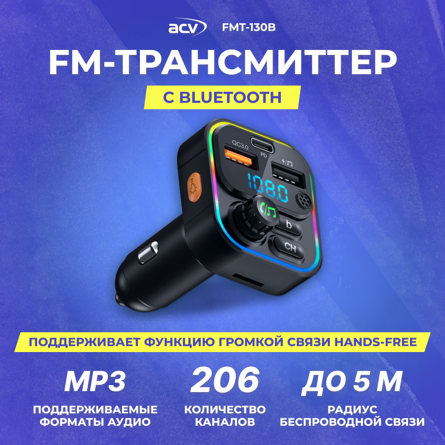 10 цен на FM модулятор ACV FMT-130B Ж-К диспл/USB/Bluetooth/RGB