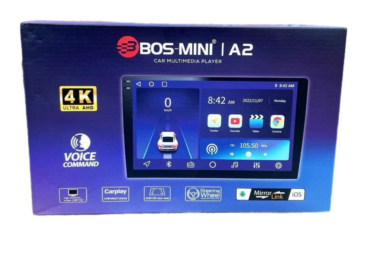 Магнитола Bos Mini CC2, Android, 9 дюймов", 2 din, GPS, Bluetooth, Wi-Fi, Голосовое управление.4 ядра, память 2+64