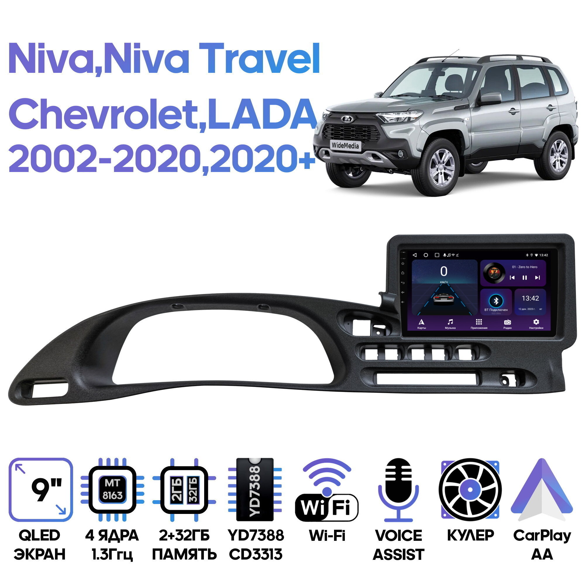 Штатная магнитола Wide Media для Шевроле Нива 2002 - 2020 / Лада Нива Тревел 2020+ / Android 9, 9 дюймов, WiFi, 2/32GB, 4 ядра, touch информация: