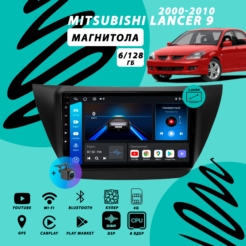 Магнитола Mitsubishi Lancer 9 (2000-2010) 6Гб+128Гб Sim/Android/Carplay/8 ядер/DSP/Wi-Fi/Bluetooth/кулер/2din/штатная магнитола информация:
