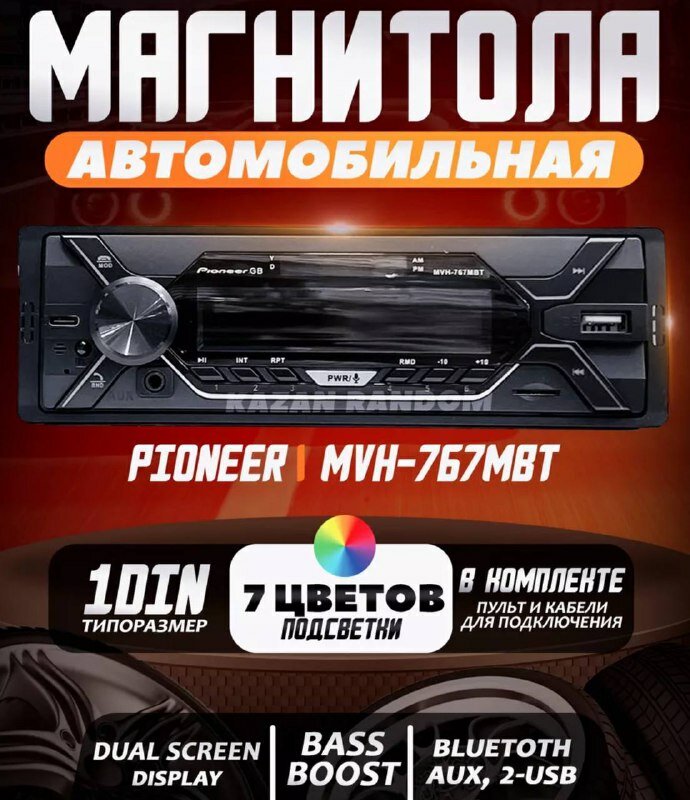 Магнитола Pioneer.gb 767 60W с Bluetooth, AUX, USB, со съемной панелью, громкая связь, 7 цветов подсветки, пульт ДУ, типоразмер 1DIN информация:
