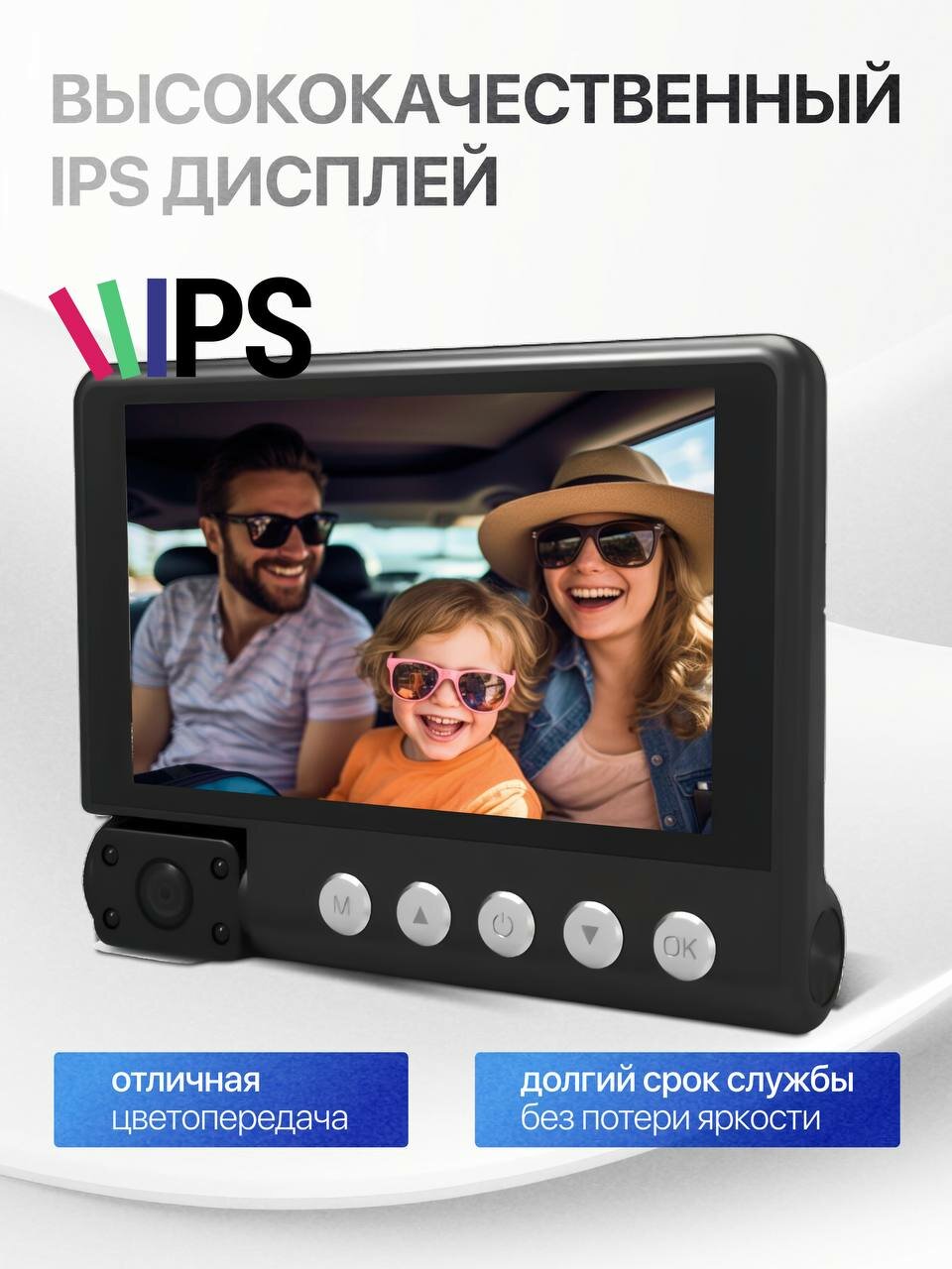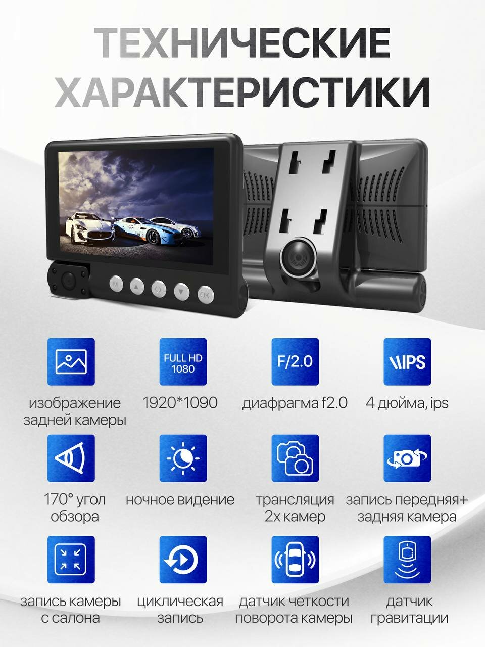Видеорегистратор Bootleg FULL HD 1296P с 2-мя камерами /Дисплей 4``c поддержкой "изображение в изображении" /Объектив 170*/G-сенсор