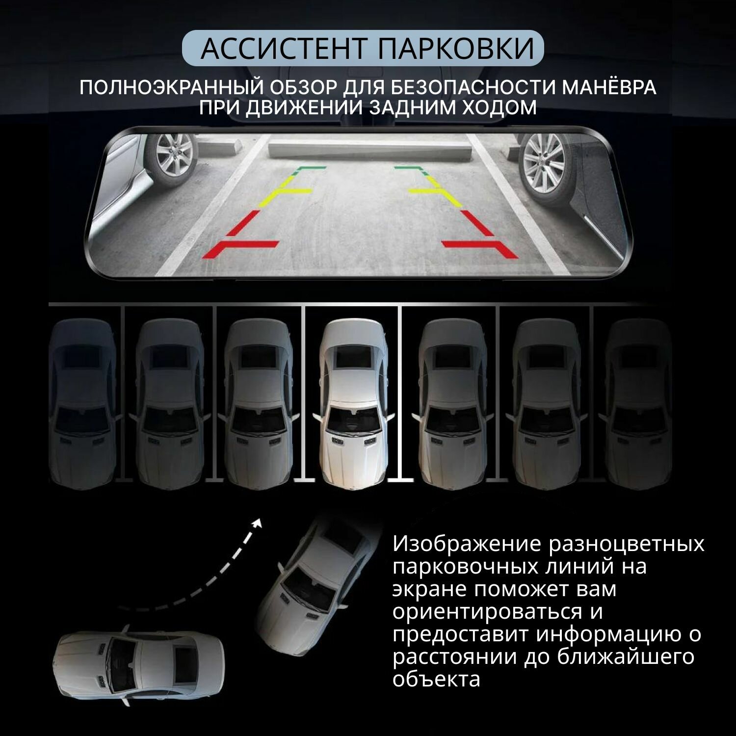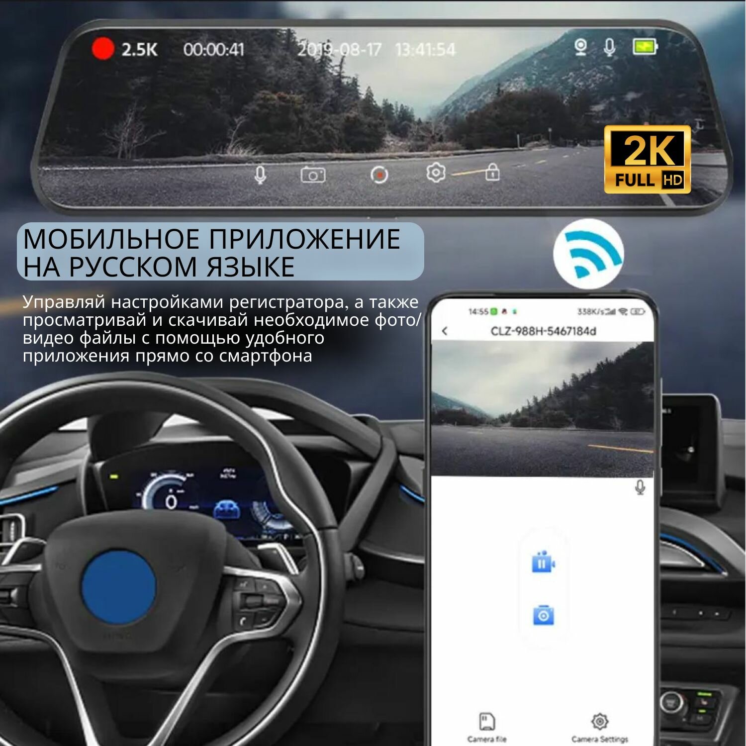 Автомобильный видеорегистратор зеркало 2К с Wi-Fi с камерой заднего вида, сенсорный экран, ночная съемка информация: