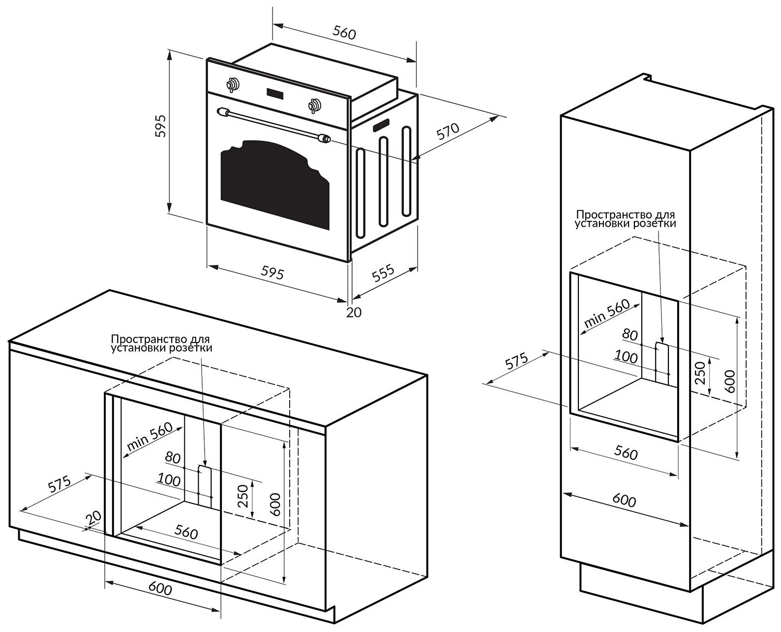 Духовой шкаф встраиваемый LEX EDM 077 C IV, 60 см, с конвекцией, механические ручки, объем 60 л, аналоговый таймер, телескопические направляющие.