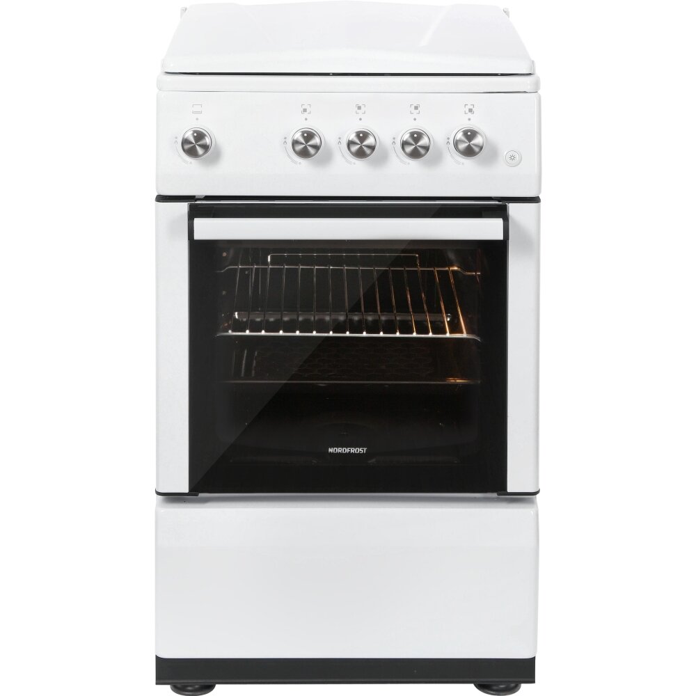 10 цен на Газовая плита NORDFROST GG 5050 W, 50 литров, авторозжиг конфорок, газ-контроль духовки, белый
