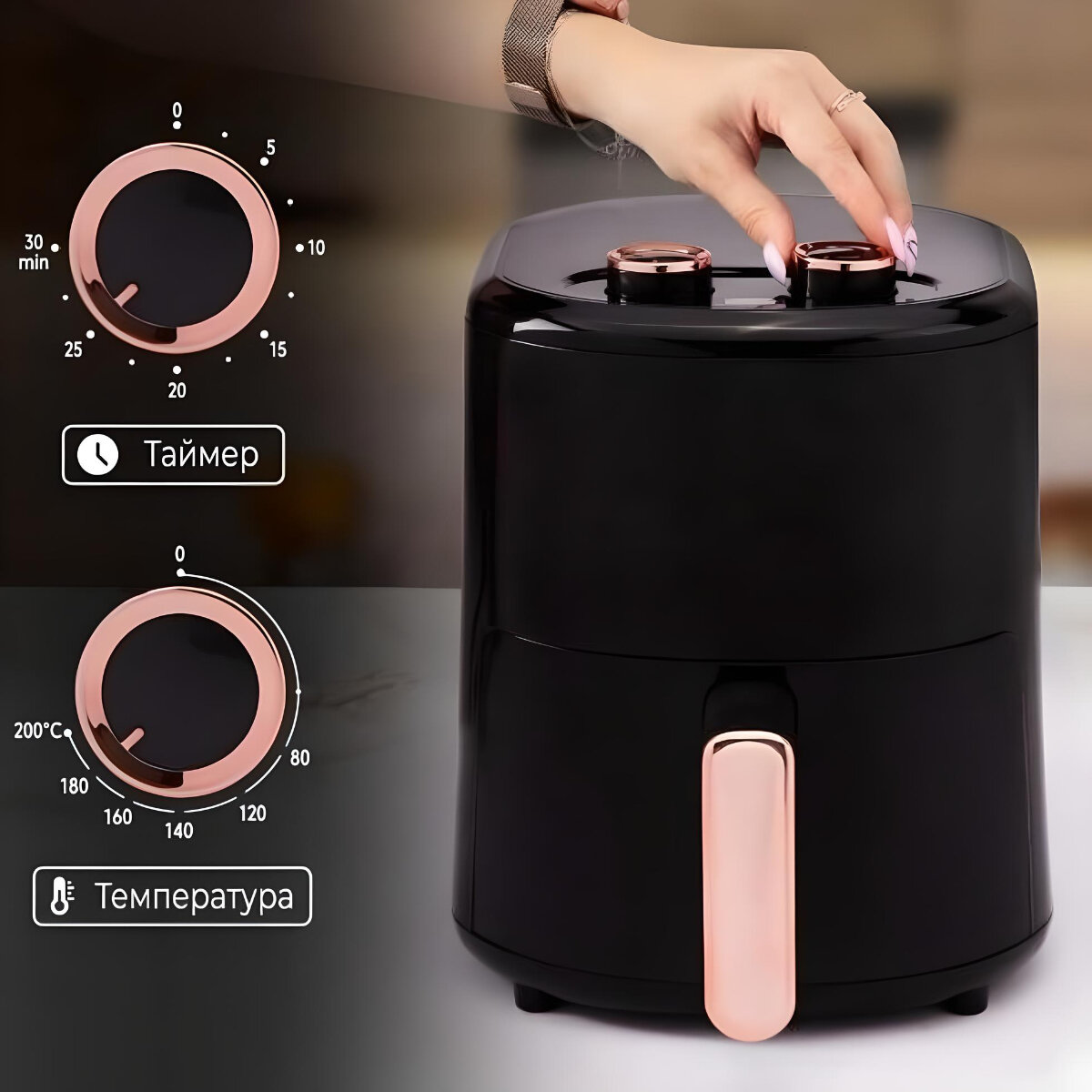 10 цен на Аэрогриль, аэрогриль мультипечь, аэрогриль для дома, 2000Вт, регулировка температуры, регулировка времени, черный
