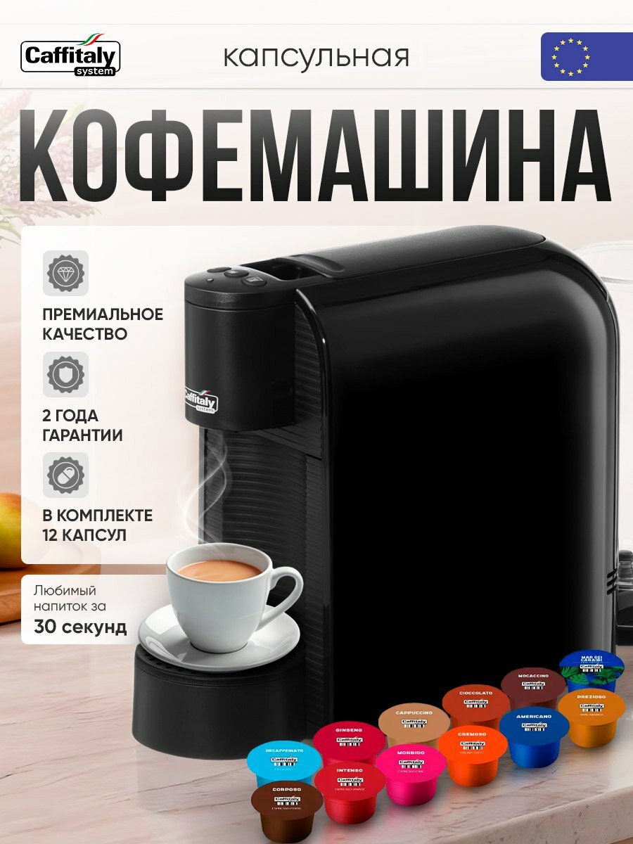 | Дополнительная информация | Совместимые капсулы следующих систем: Caffitaly; K-fee; Pauling,Рекомендованные производителем Оригинальные капсулы Caffitaly содержат больший объем кофе и имеют две мембраны для получения бархатистой пенки |
