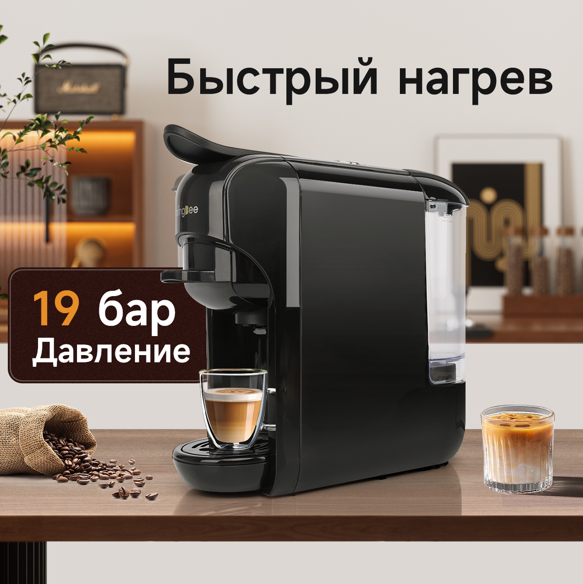 Отзывы на Капсульная кофемашина KaringBee AC-516K черный, 3-в-1/мощность 1450 Вт/давлением 19 бар/эспрессо и американо