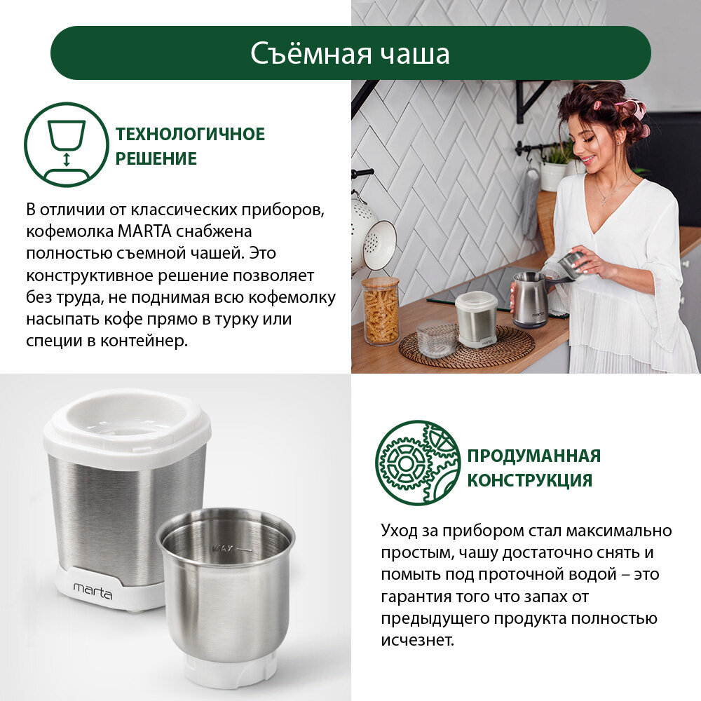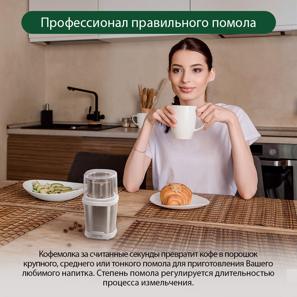 Кофемолка MARTA MT-CG2182A белый жемчуг информация:
