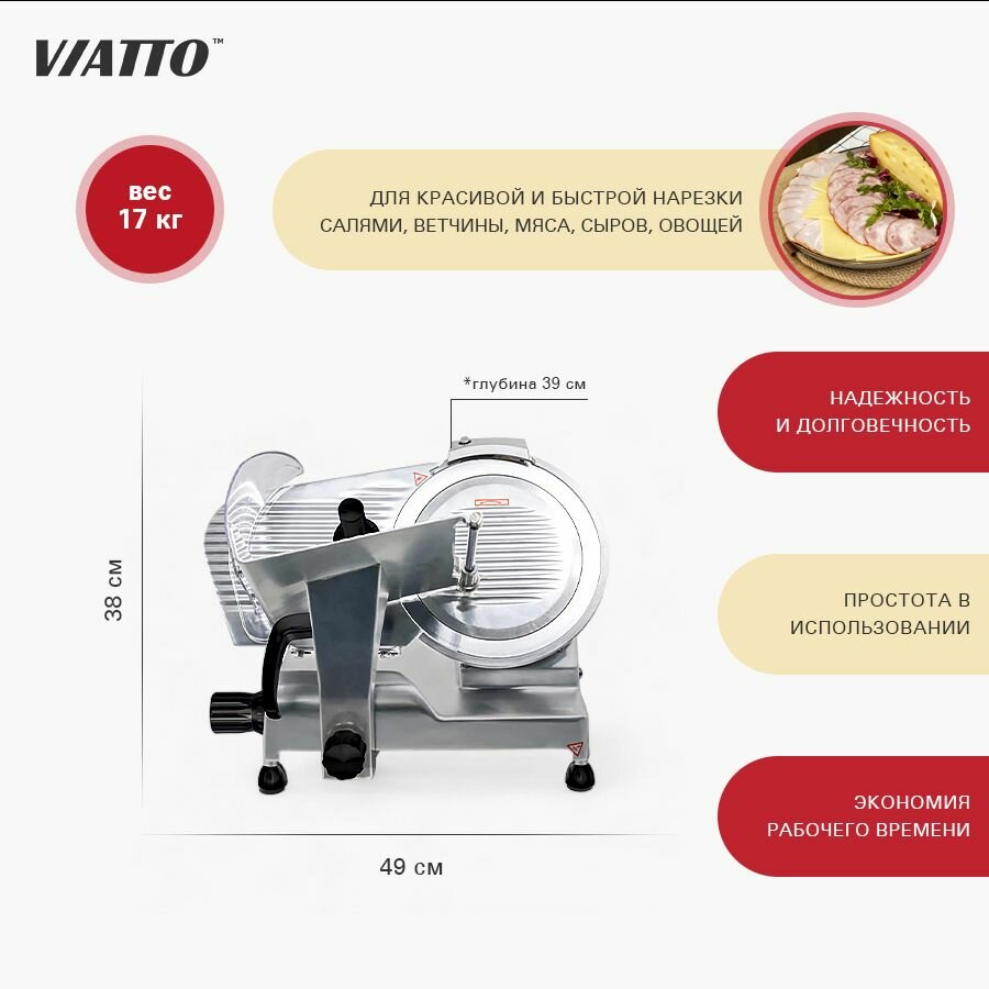 Слайсер Viatto VA-250 , ломтерезка электрическая для нарезки мяса, колбасы, сыра информация: