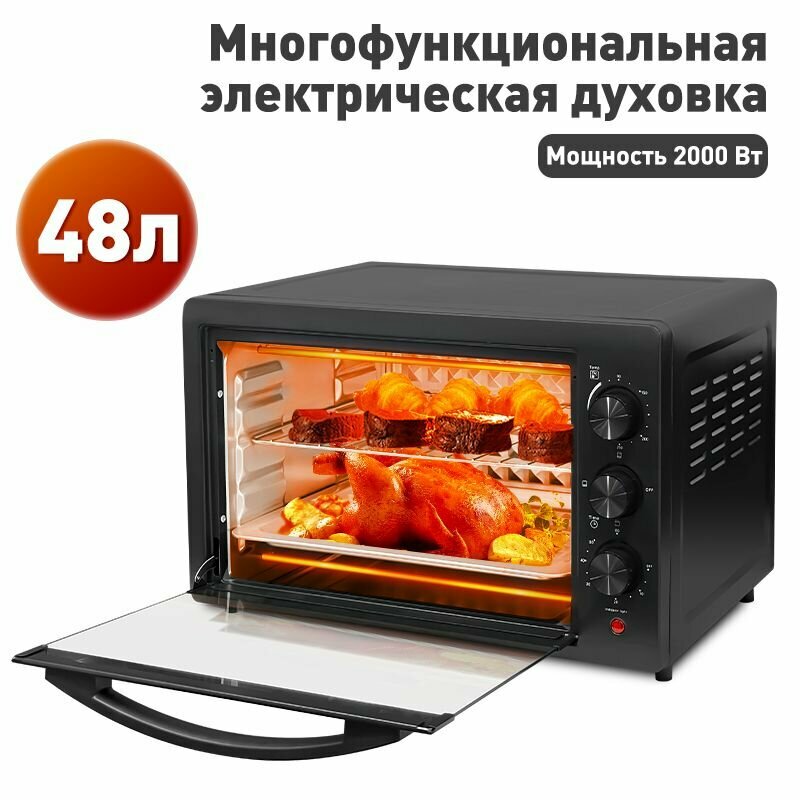 Мини-печь, большой объем 48 л с зональным нагревом, 2000 Вт, черный информация: