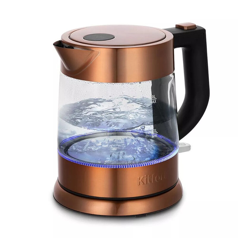 Чайник KITFORT КТ-648, 1 л, 2200 Вт, закрытый нагревательный элемент, терморегулятор, стекло, серебристый