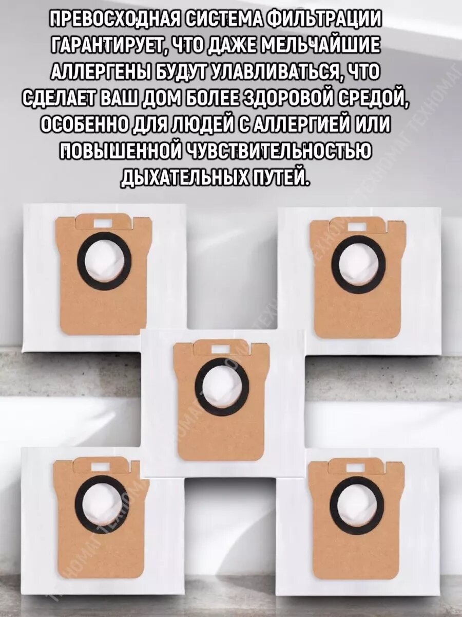 Мешок пылесборник (5 шт.) для робота-пылесоса Xiaomi Dreame Bot L10s Pro, L10s Ultra, Mijia Omni Robot X10, X10+, B101GL, B101CN, Mijia Omni 1S, 2S информация: