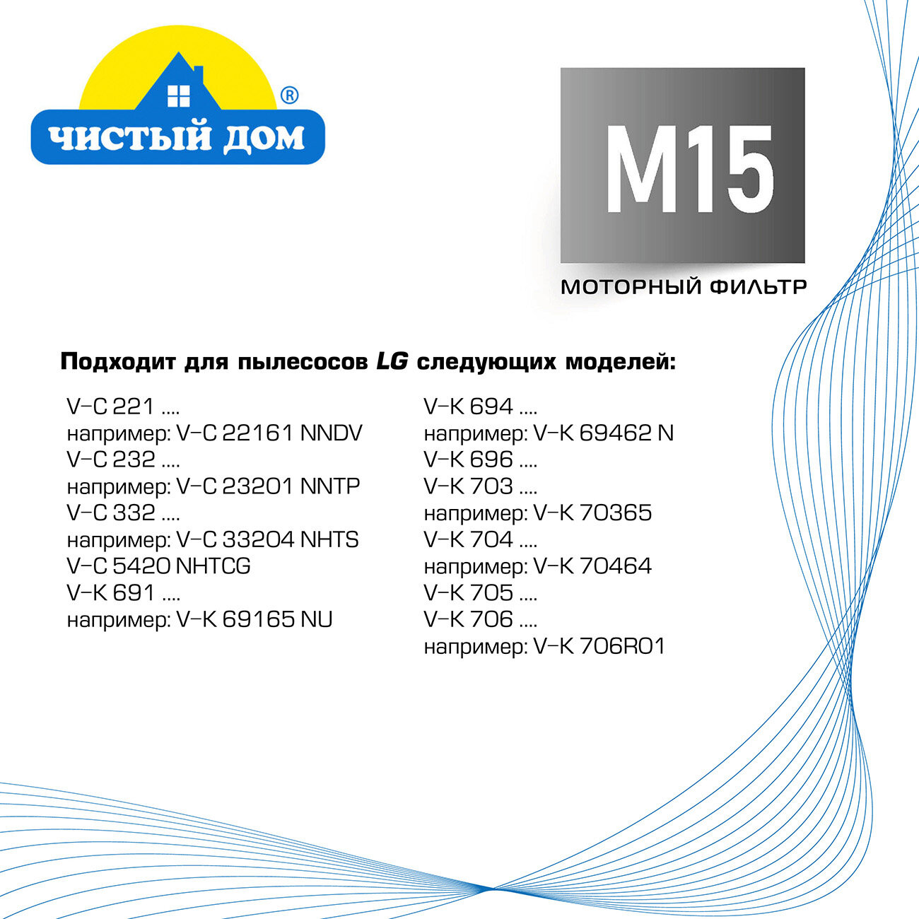 Чистый Дом M 15 LGE Комплект моторных фильтров для пылесоса LG VC 221,232,332, VK 691,694,696,703-706 информация: