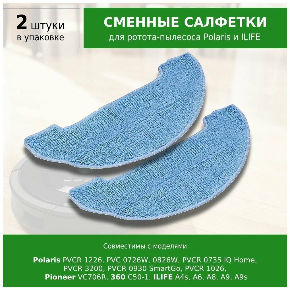 Сменные салфетки МОП 2 шт. для робота-пылесоса Polaris PVCR 1226, PVC 0726W, 0826W, 360 C50-1, ILIFE A4s, A6, A8, A9, A9s информация: