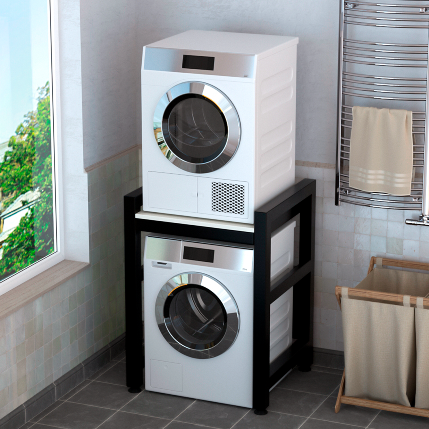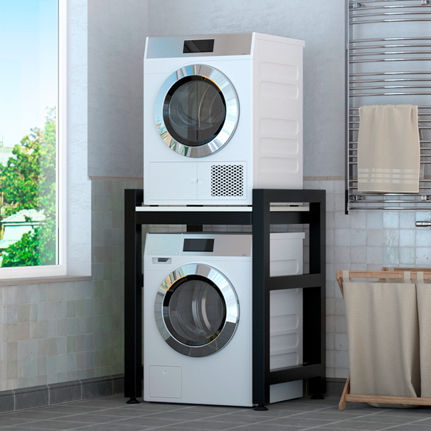 Усиленный стеллаж для стиральной и сушильной машины, черный каркас, белый информация: