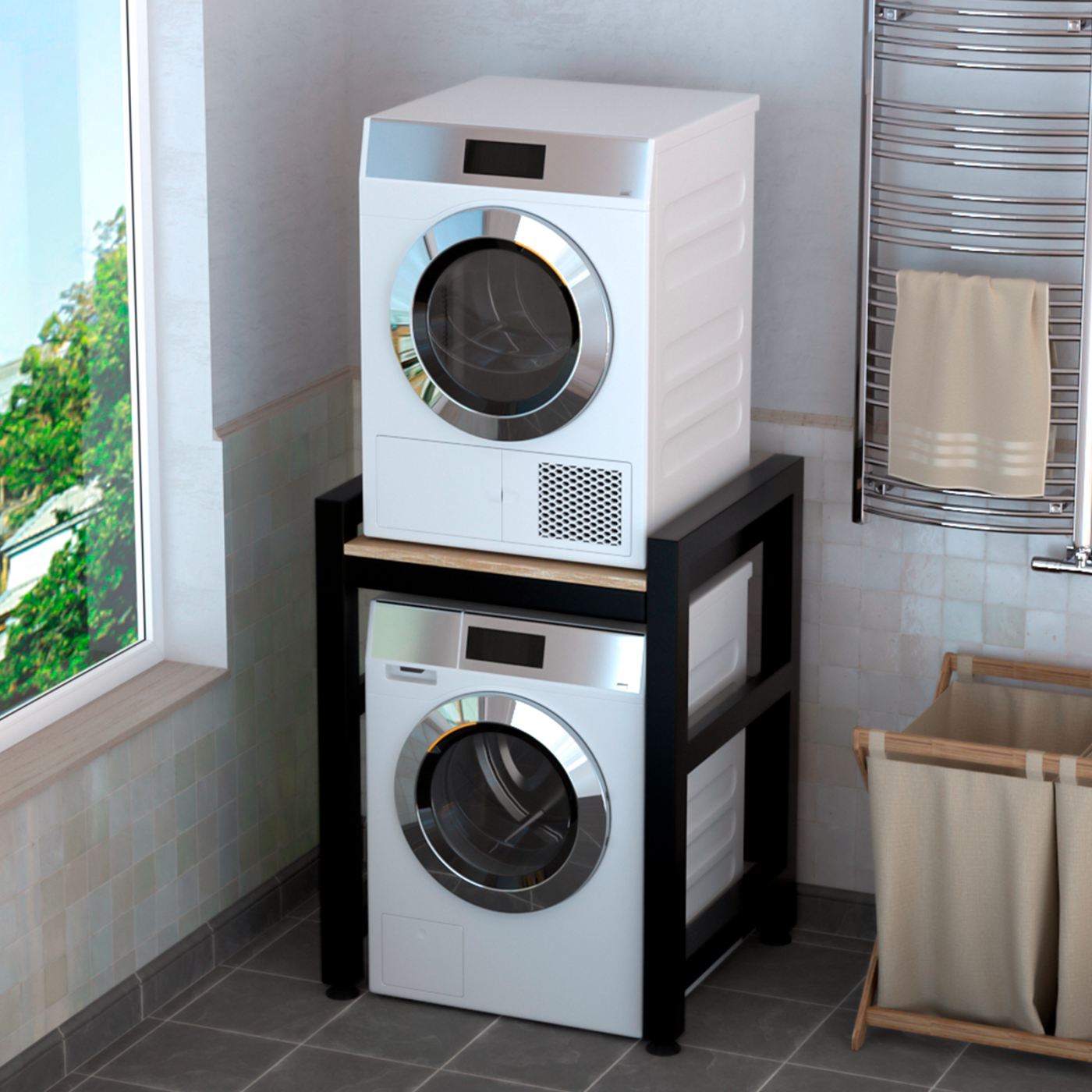 Усиленный стеллаж для стиральной и сушильной машины, черный каркас, дуб сонома информация: