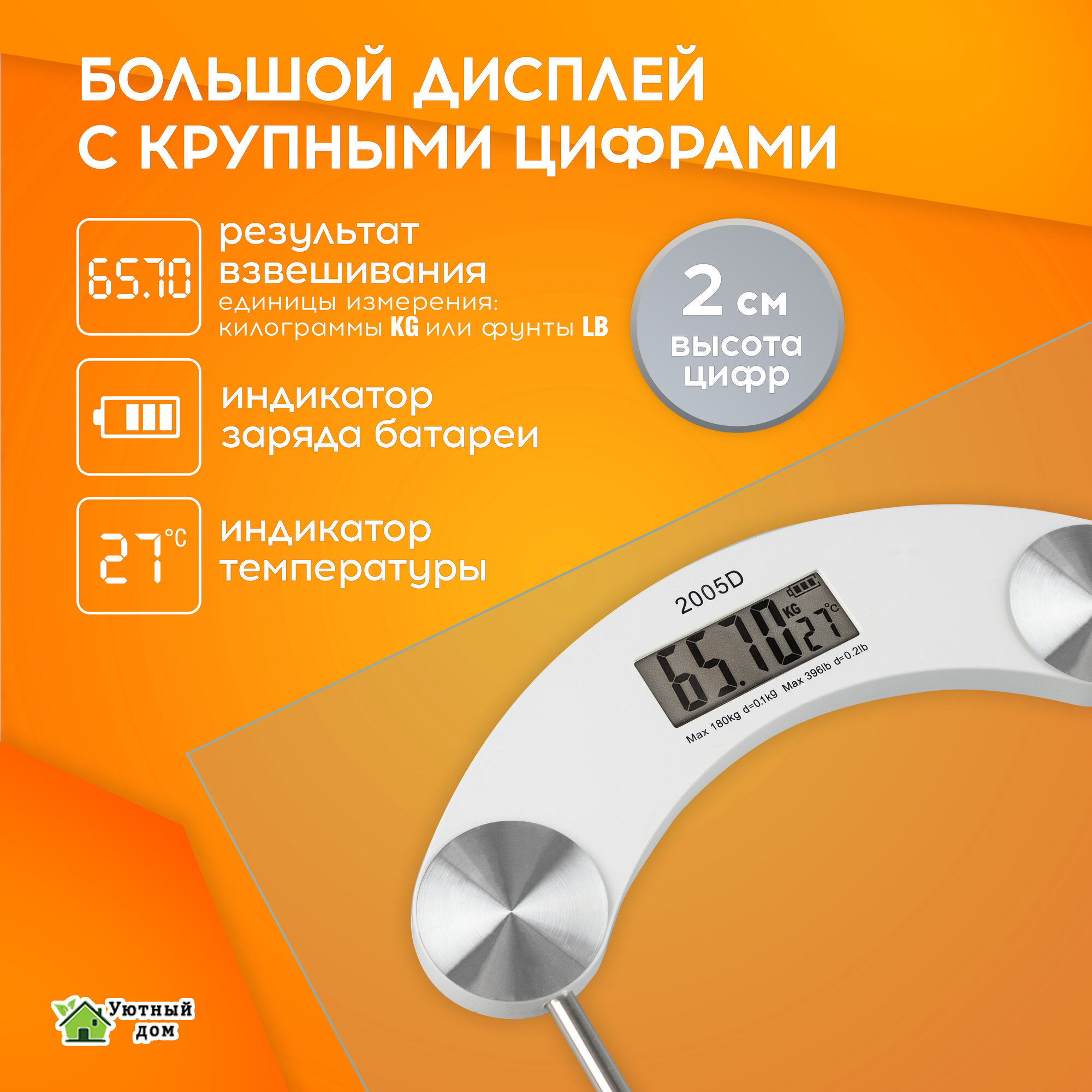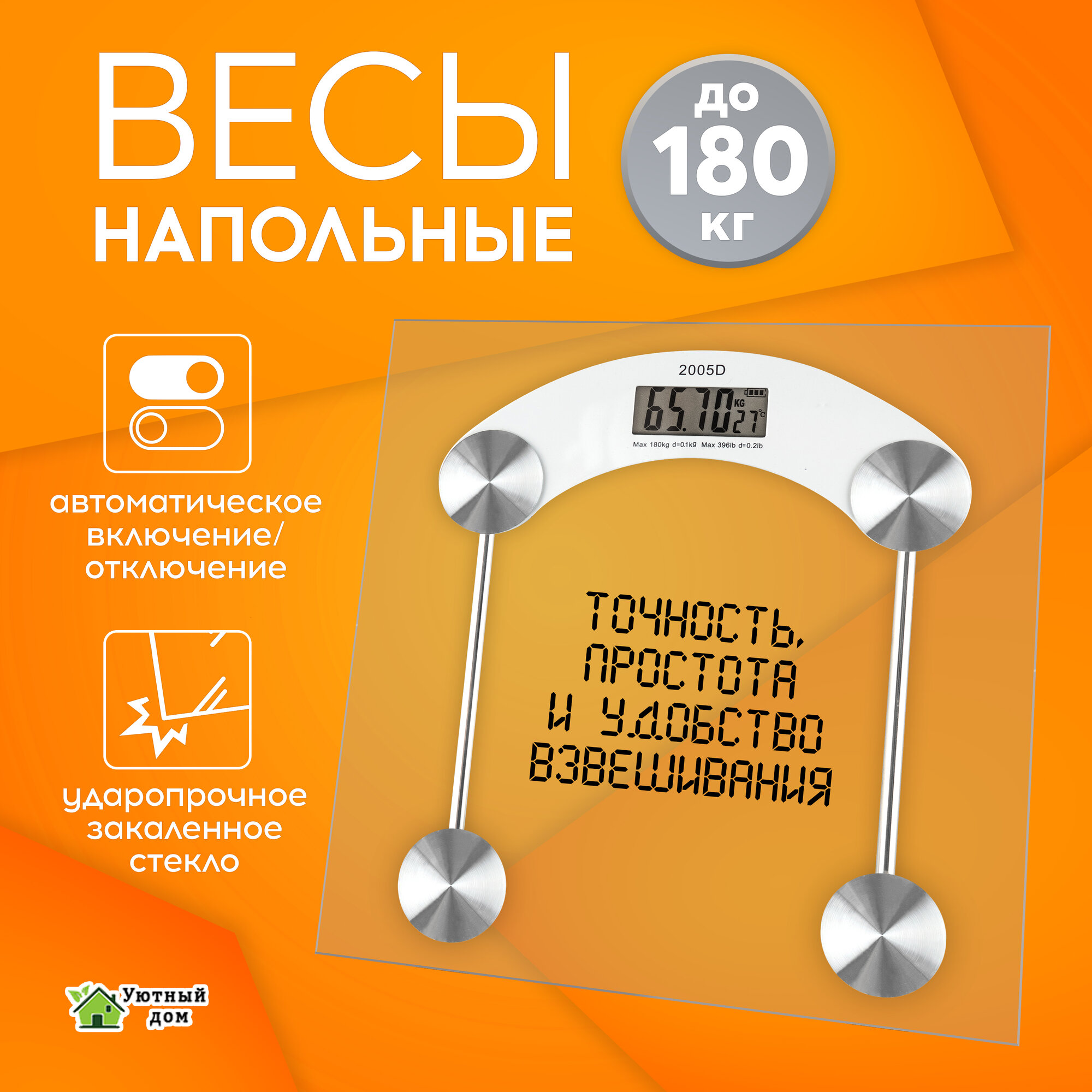 Весы напольные электронные точные с большим дисплеем, прозрачные, до 180 кг. ROZZI информация:
