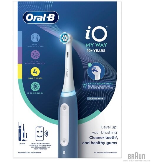 Электрические зубные щетки ORAL-B IO4 MY WAY EXTRA BRUSH, синий информация: