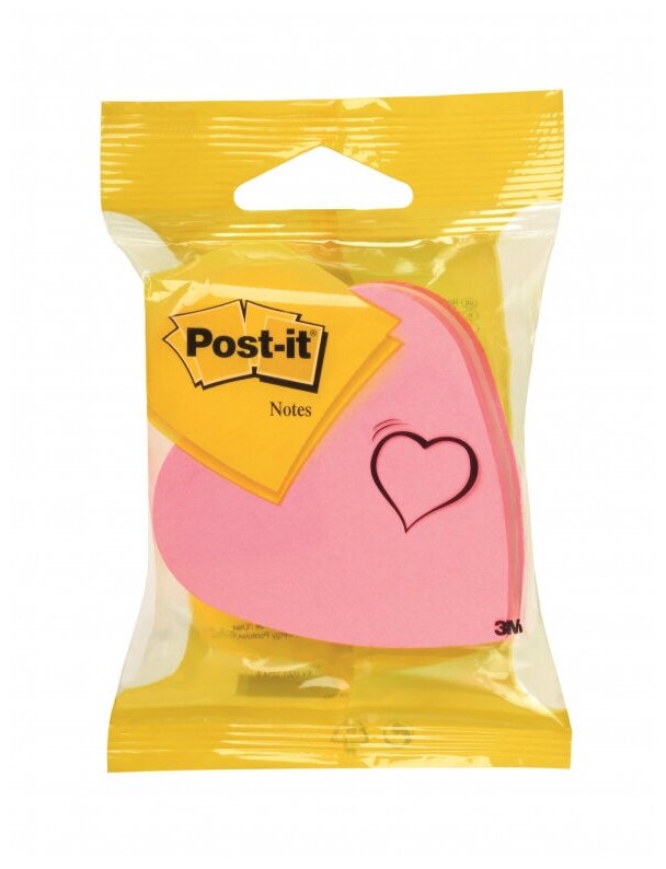 Стикеры фигурные Post-it Сердце неоновые и пастельные 3 цвета 1 блок 225 листов, 896136 496 ₽