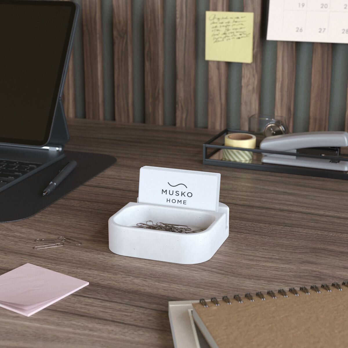 Подставка, держатель для визиток Oliver, визитница, бетон, белая матовая