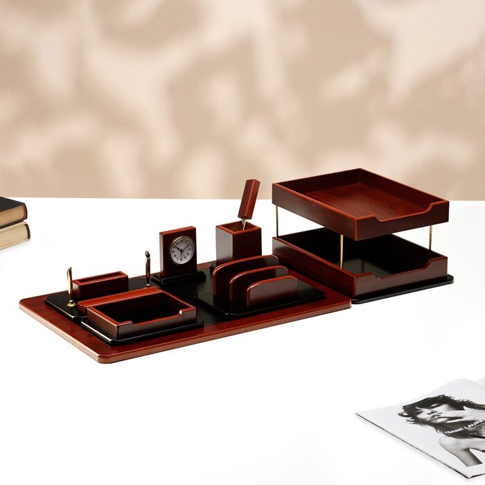 | В комплекте | лоток для бумаг, нож канцелярский, подставка, часы |