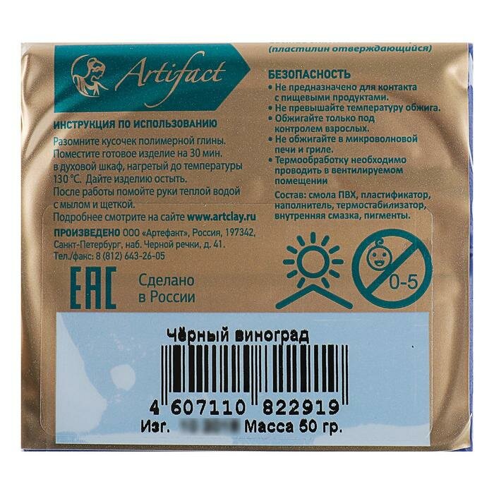 Artifact Пластика - полимерная глина 50 г «Суперпрочная формула» Чёрный виноград информация: