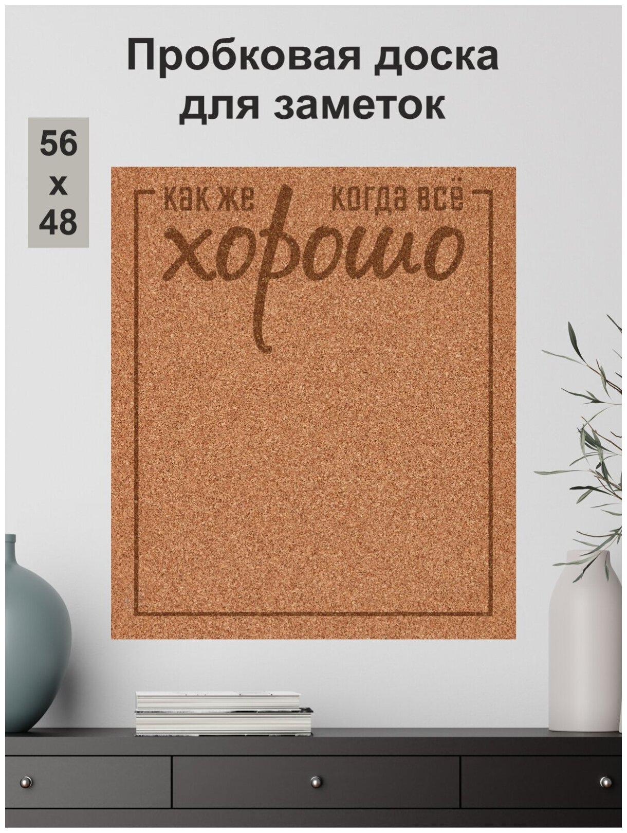 Пробковая доска "Как хорошо" без рамки для заметок 56х48см на вспененной основе (рамка надпись мотиватор) информация:
