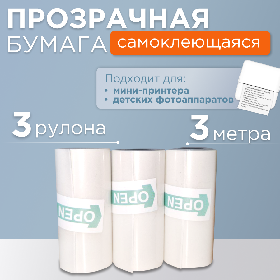 Прозрачная самоклеющаяся бумага для минипринтера TinyPrint 3 рулона информация: