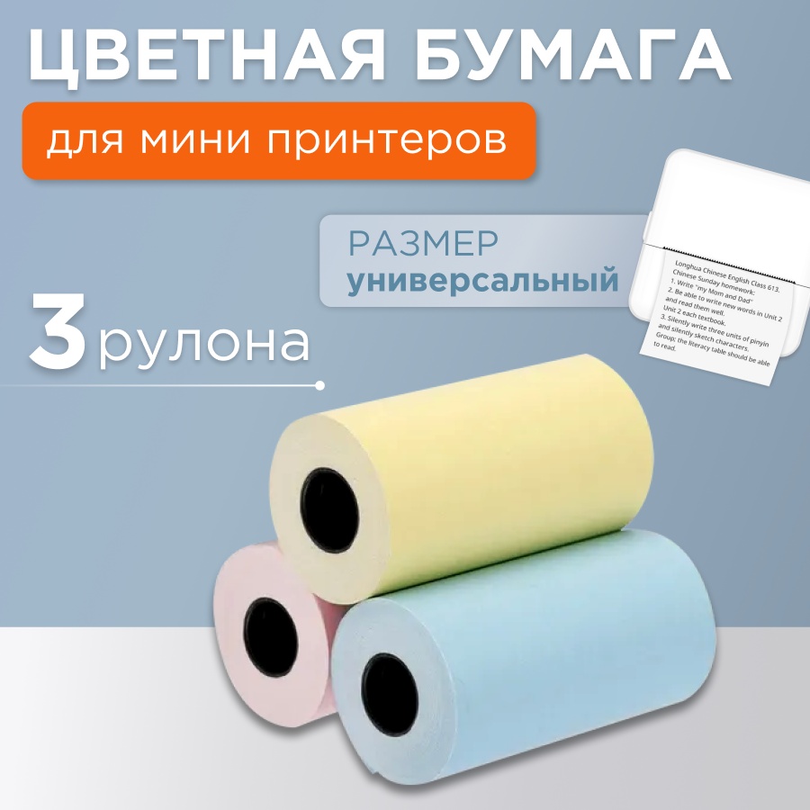 Цветная бумага для минипринтера TinyPrint 3 рулона информация: