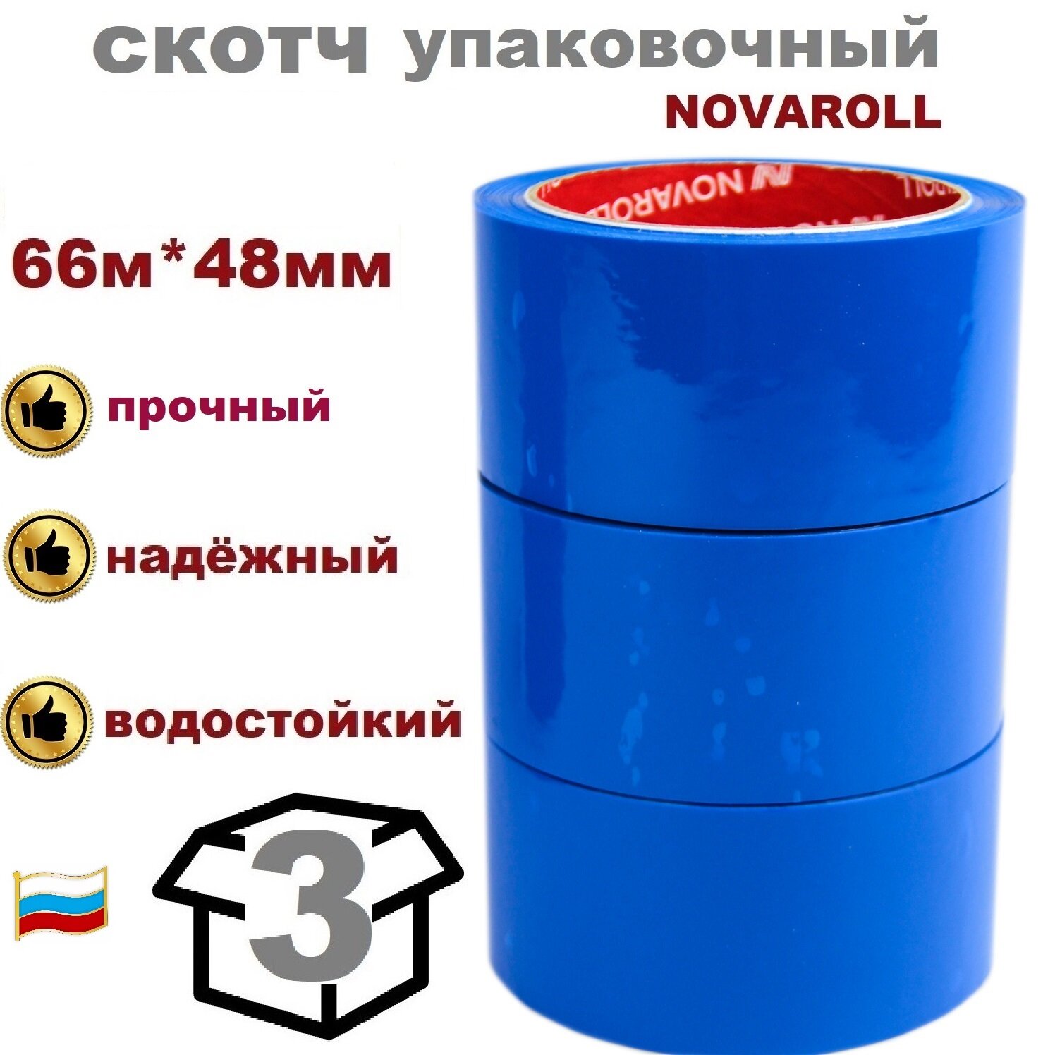 Отзывы на Novaroll 48мм*66 м, 3 шт в наборе клейкая лента канцелярская широкая липкая синяя / скотч цветной синий