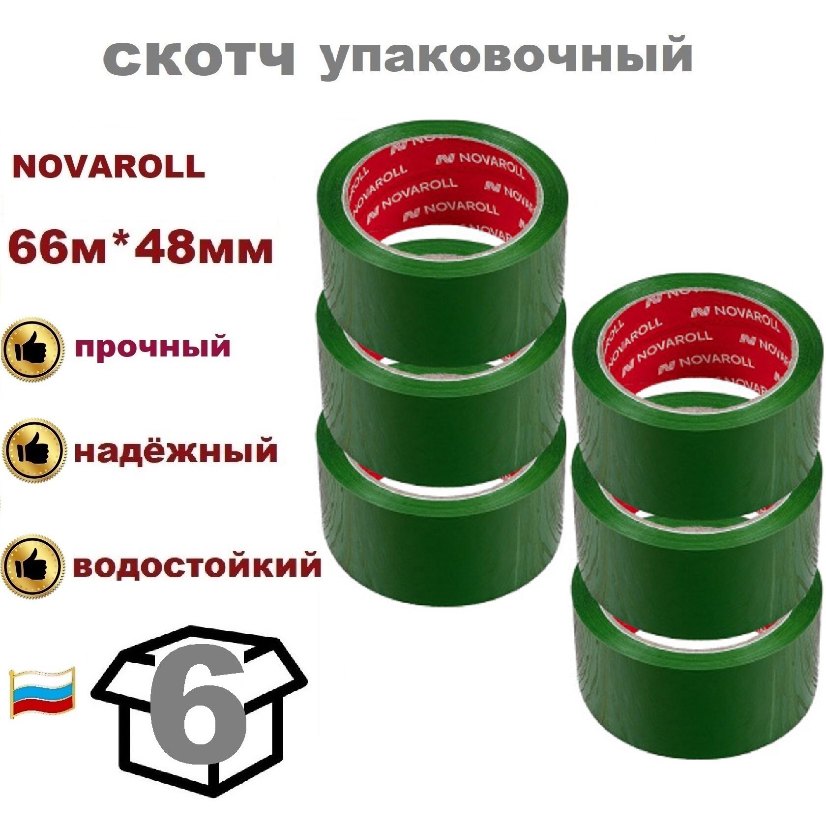 10 цен на Novaroll 48мм*66 м, 6 шт в наборе клейкая лента канцелярская широкая липкая зеленая / скотч цветной зеленый