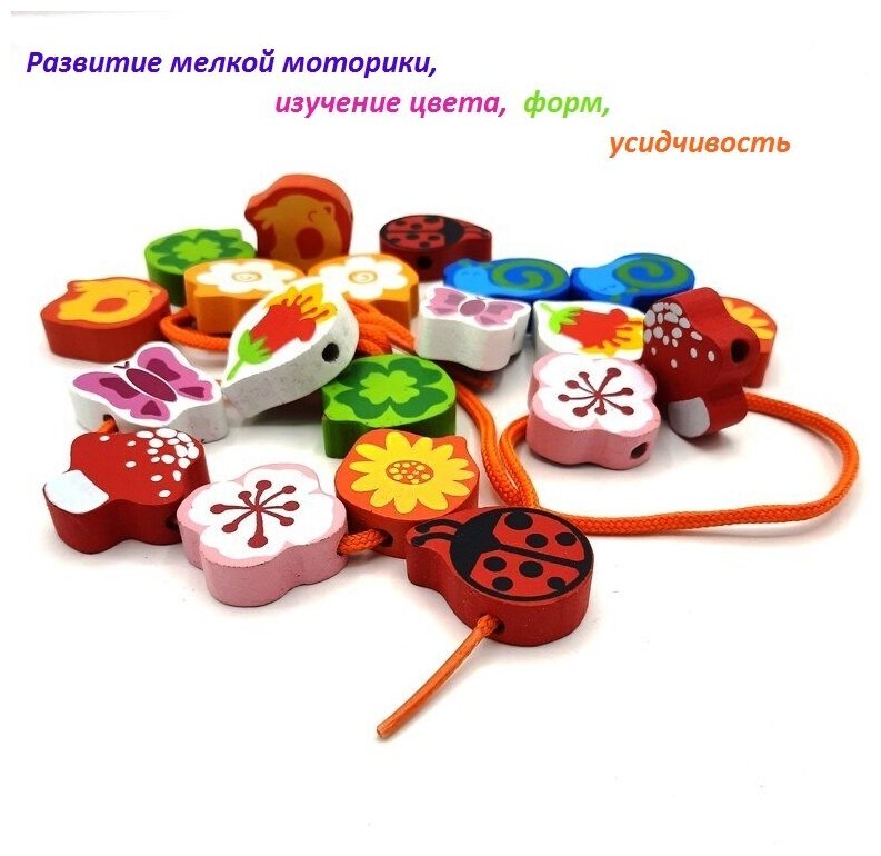 10 цен на Деревянная развивающая игрушка Шнуровка-бусы для малышей. 20 деталей
