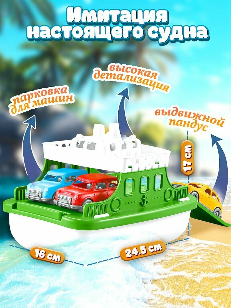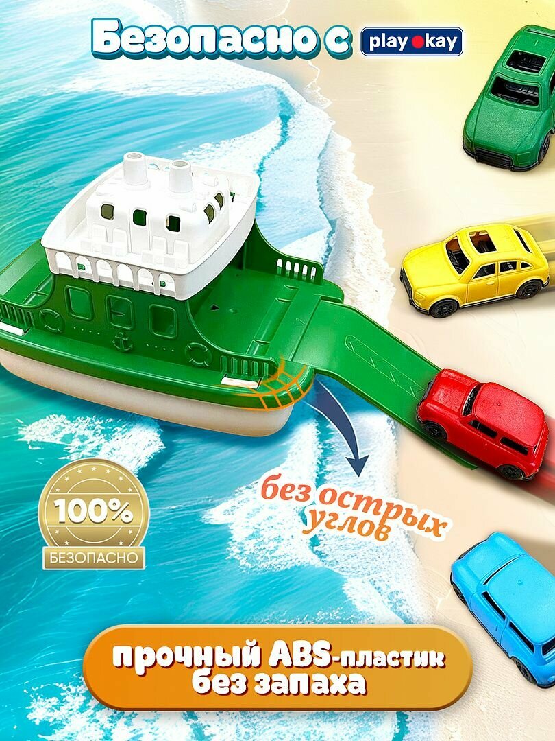 Игрушки для ванной Play Okay для купания, кораблик с горкой, с набором из 4 машинок, для воды и езды на полу, развивающая информация: