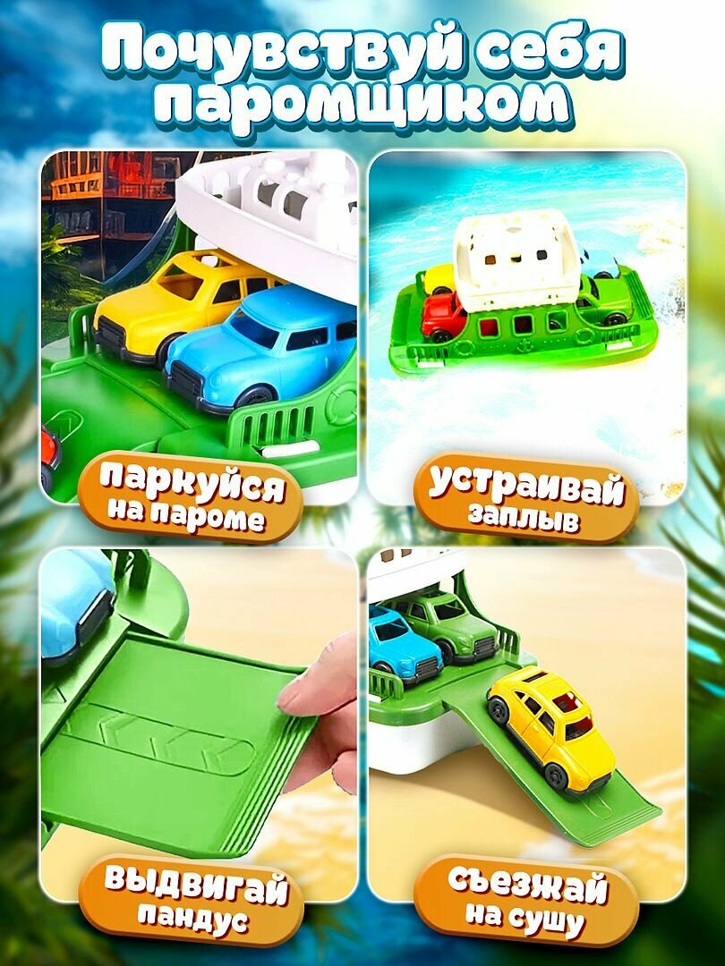 Отзывы на Игрушки для ванной Play Okay для купания, кораблик с горкой, с набором из 4 машинок, для воды и езды на полу, развивающая