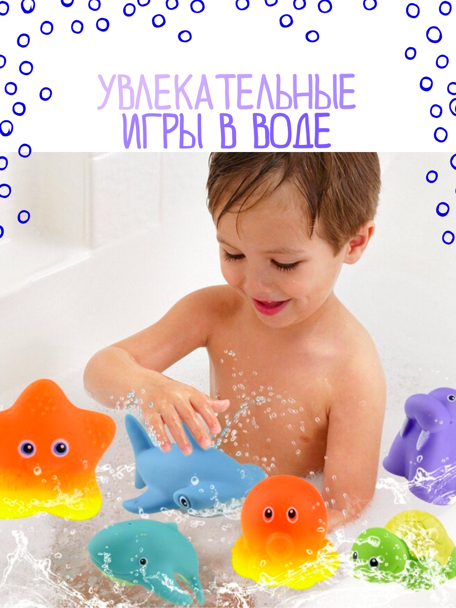 | Виды игрушек в комплекте | акула, дельфин, морской котик, осьминог, черепашка |