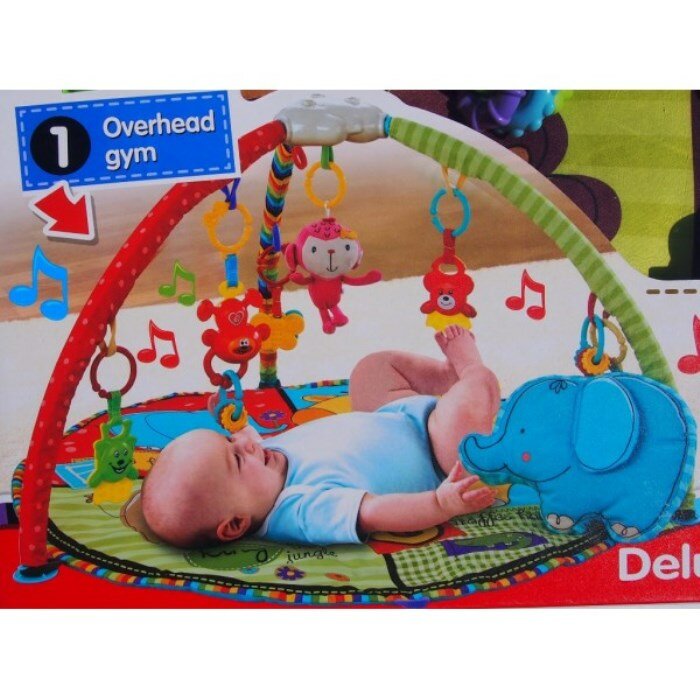 | Комплектация | Развивающий коврик укомплектован: коврик / 3-мя дугами / 5 игрушек с функцией музыки / 2 плюшевые игрушки / прорезыватель. |